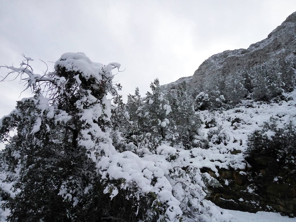 El Montgó teñido de blanco