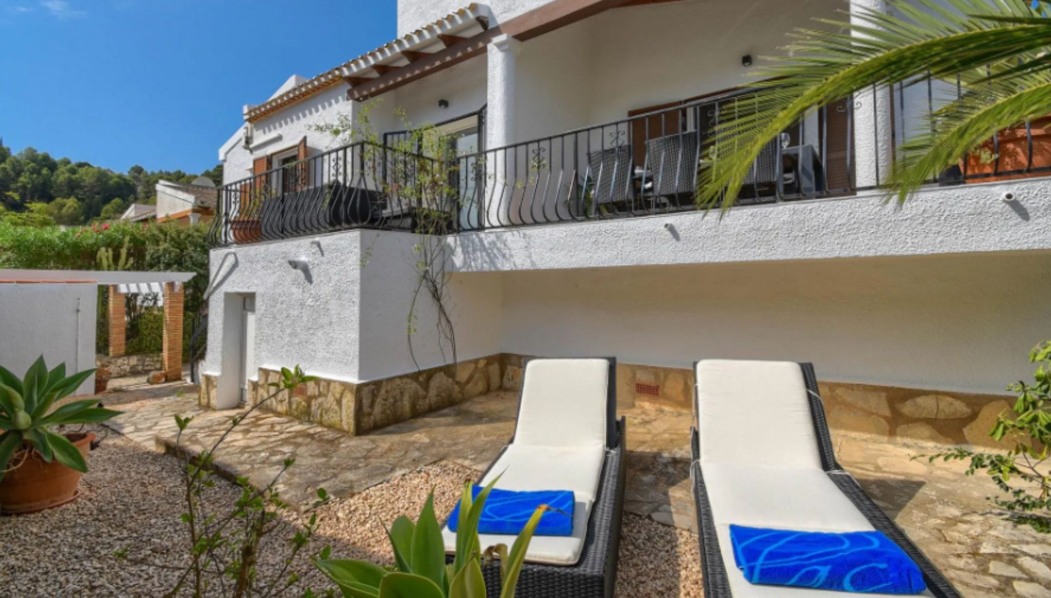 Terraza equipada con tumbonas para descansar y tomar el sol