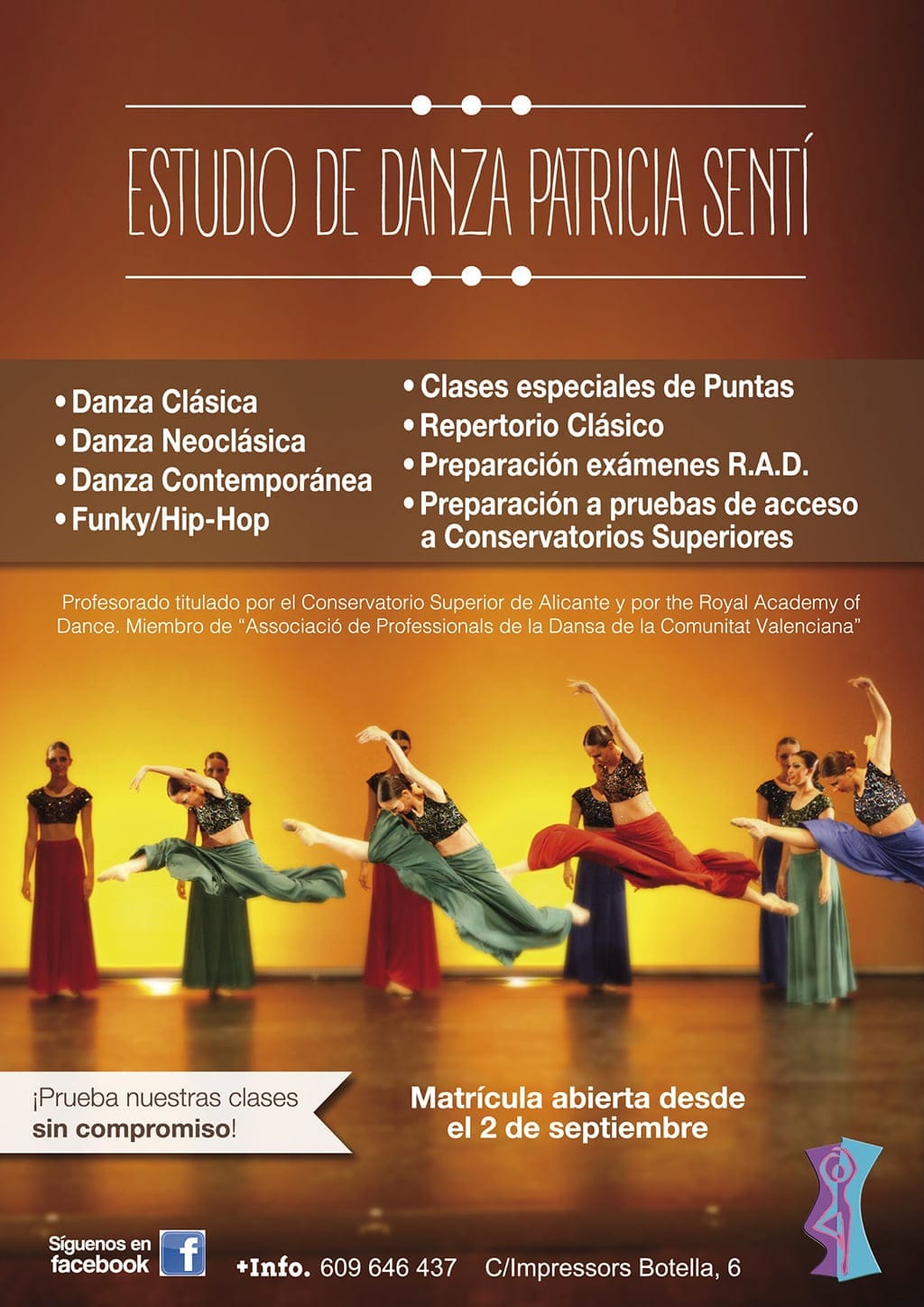Estudio de Danza Patricia Sentí abre su nuevo curso 2015/2016 a partir del 1 de octubre. Danza Clásica, Danza Neoclásica, Contemporánea, Funky/Hip-Hop y otras muchas disciplinas que podrás aprender en una de las mejores escuelas de danza de Dénia.
