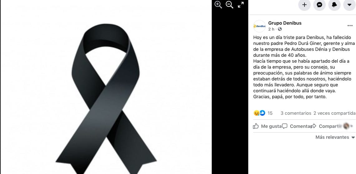 29 de abril de 2021 - 13:59 1 de 1Ver el artículo original: Fallece el empresario Pedro Durá en Dénia Despedida de su hijo en el perfil de la empresa
