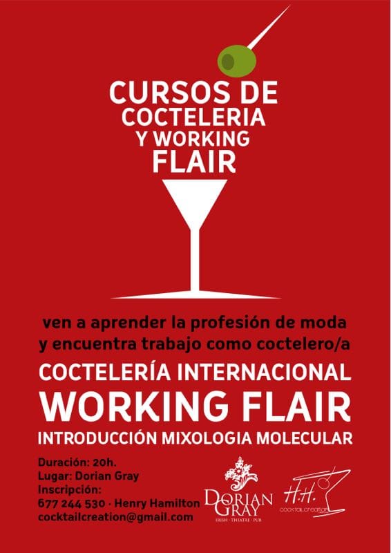 Las inscripciones al curso pueden hacerse llamando al 677 244 530, Henry Hamilton o escribiendo a cocktailcreation@gmail.com.