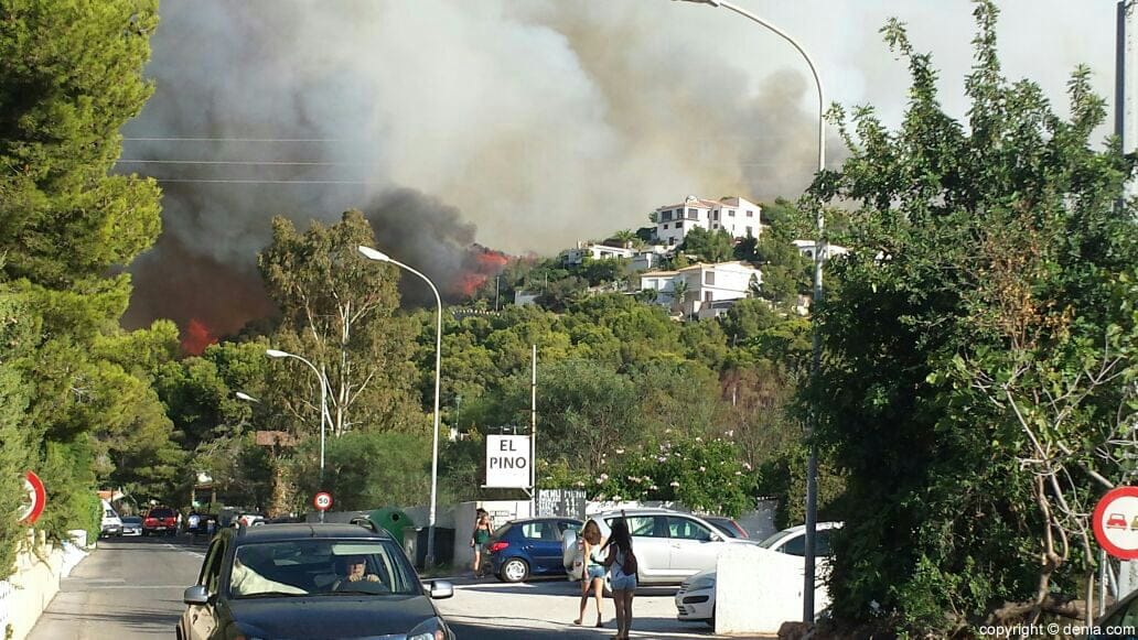 El incendio declarado en la carretera del cabo de San Antonio ha llegado hasta Les Rotes, en Dénia, donde se ha desalojado a numerosos vecinos.