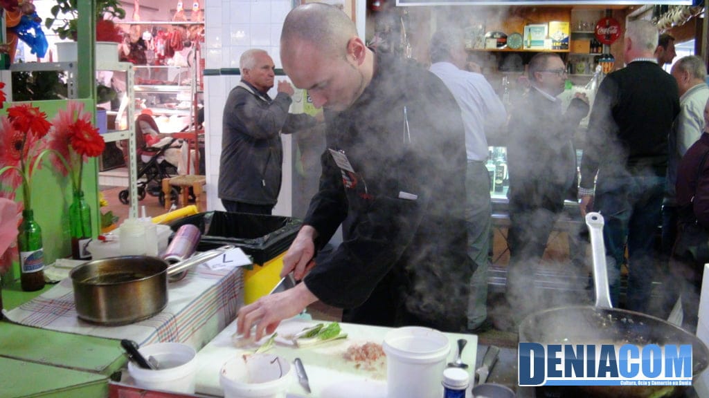 Cocinando los ingredientes para la receta de Gamba Roja de Dénia
