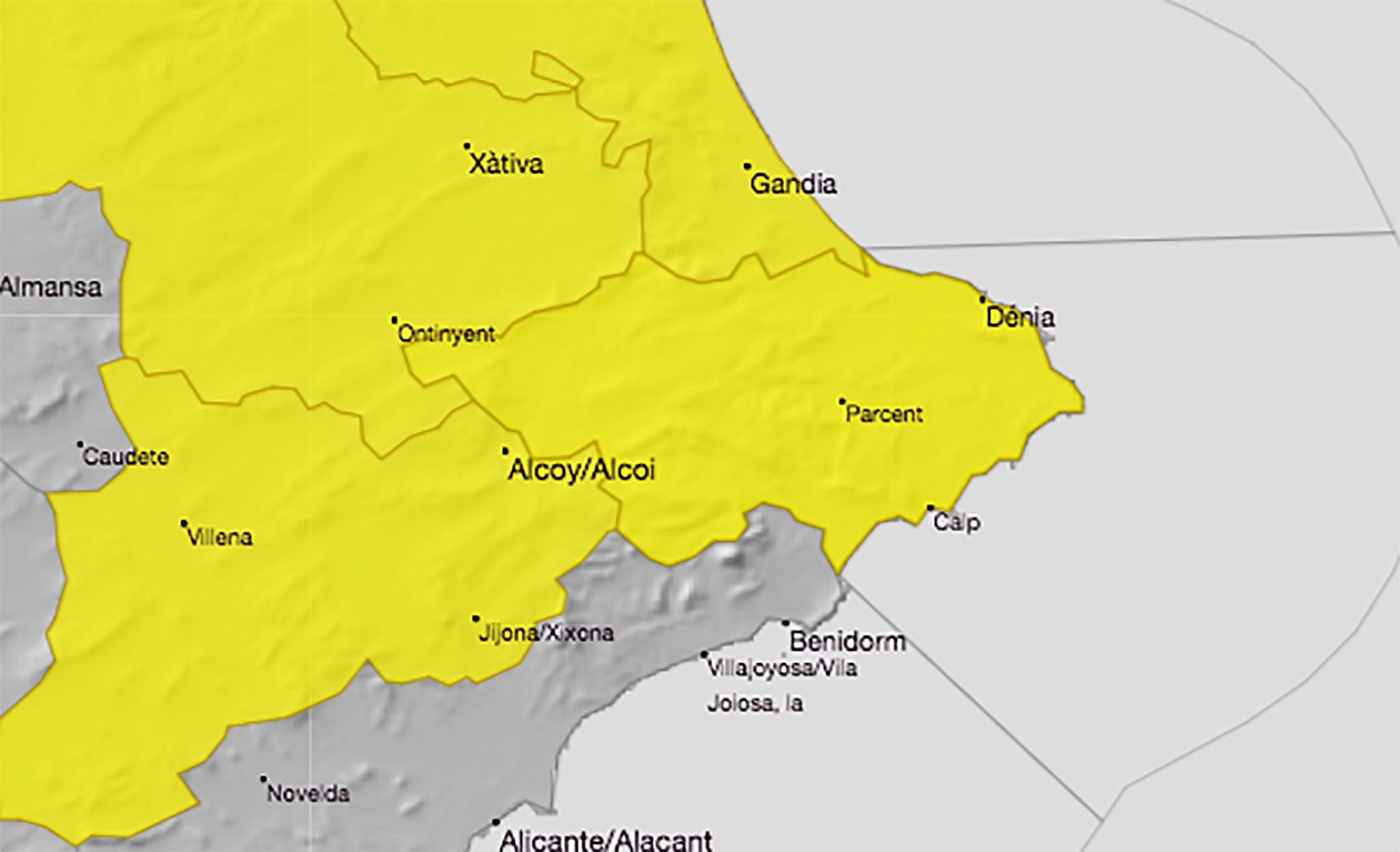 16 de septiembre de 2022 - 09:03 1 de 1Ver el artículo original: La AEMET activa la alerta amarilla en Dénia por posibles tormentas Alerta amarilla en Dénia para el 16 de septiembre de 2022