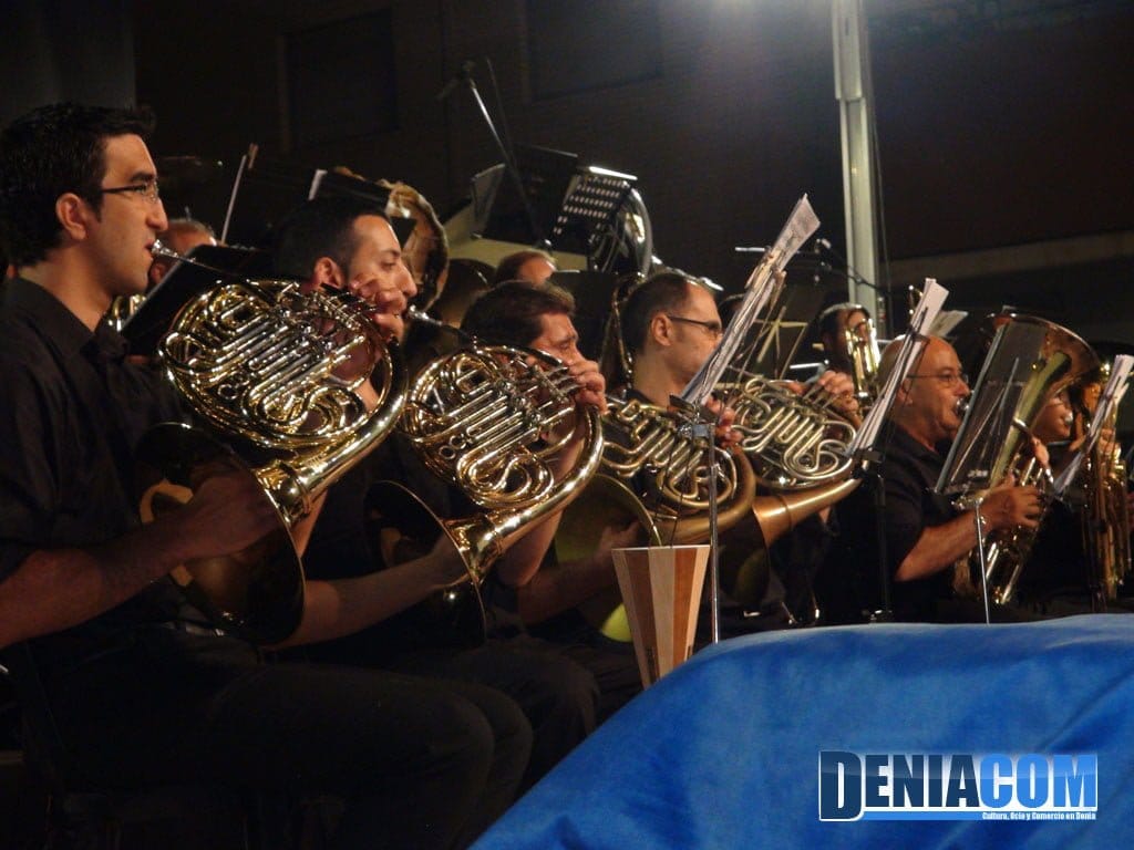 Las trompas iluminan la noche de la Santíssima Sang durante el concierto de la Agrupación Artística Musical de Dénia