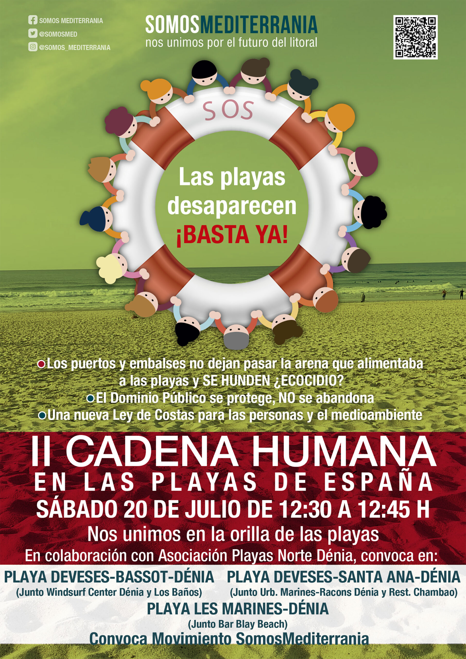 17 de julio de 2024 - 13:17 1 de 2Foto SiguienteVer el artículo original: La Asociación en Defensa de las Playas Norte de Dénia convoca una cadena humana contra los deslindes Cadena humana convocada por la Asociación en Defensa de las Playas Norte de Dénia, en colaboración con SOMOSMEDITERRANEA Cadena humana de la Asociación en Defensa de las Playas Norte de Dénia