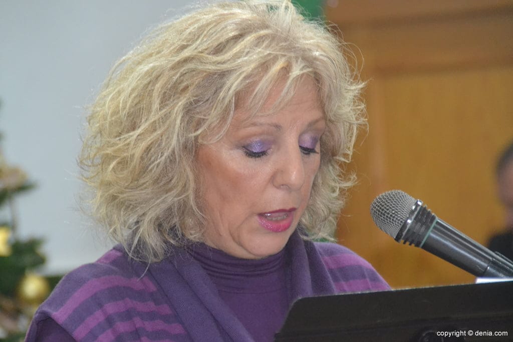 22 de diciembre de 2016 - 23:29Una de las rapsodas leyendo poemas Foto Anterior6 de 15Foto SiguienteVer el artículo original: La Casa de Andalucía celebró la entrega de los premios del XXI Certamen de Poesía Adolfo Utor Acevedo Premiados y colaboradores con los organizadores Pep Calero con el premio Juan Herraiz recogiendo el premio Joaquín Boscá con su guitarra Mª Carmen Jiménez presidenta de la Casa de Andalucía de Dénia Una de las rapsodas leyendo poemas Vicent Grimalt con parte de la familia Utor Público asistente al acto Joaquin Bosca tocando la guitarra Pep Calero con Mª Carmen Jiménez Vicent Grimalt en su parlamento Pep Calero explicando su obra Ana Ayala recitando Adolfo Utor dando sus agradecimientos Vicent Balaguer recitando poemas