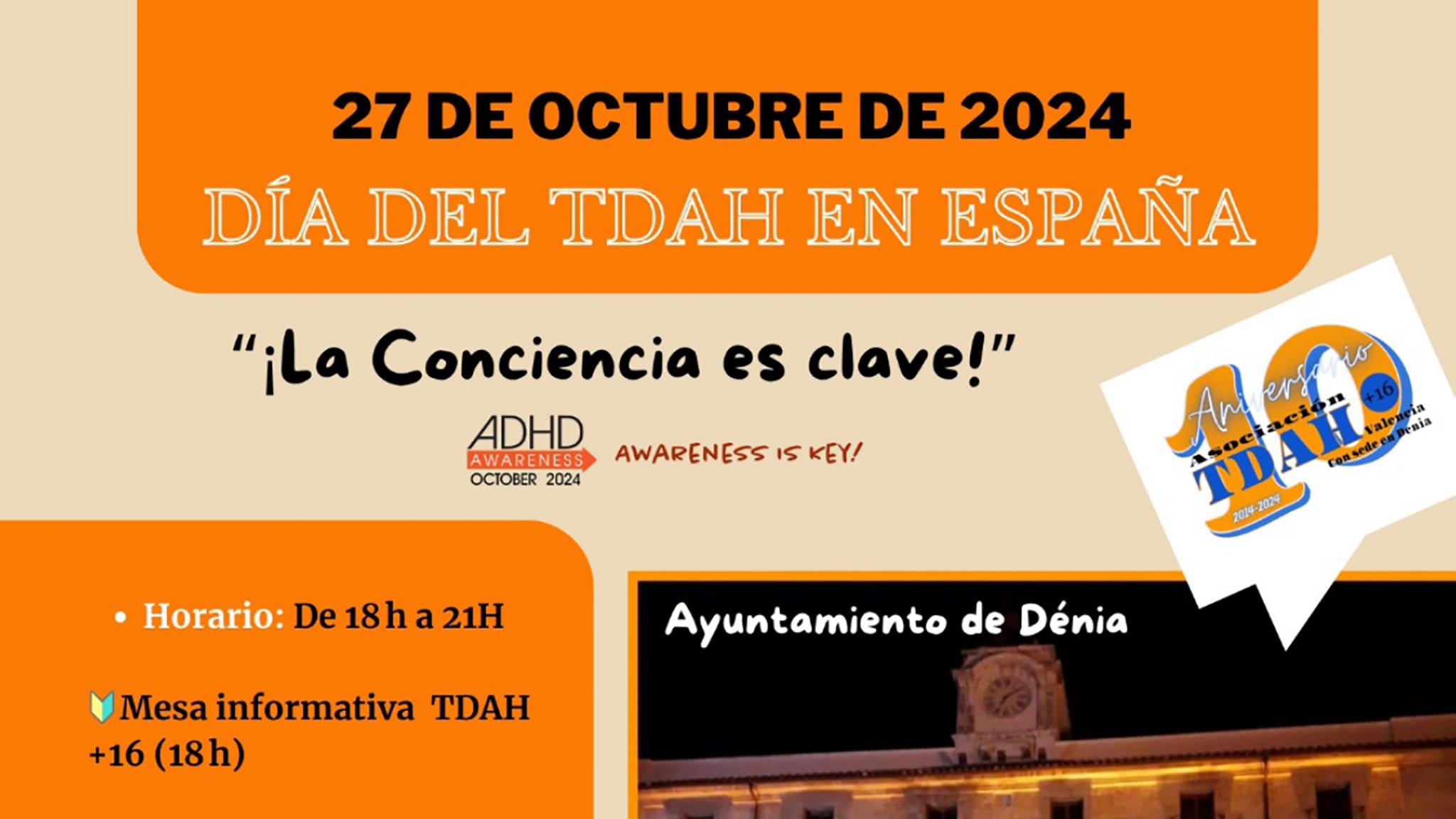 22 de octubre de 2024 - 10:55 1 de 2Foto SiguienteVer el artículo original: ‘¡La Conciencia es clave!’, una jornada para visibilizar el TDAH en Dénia Actividades por el Día del TDAH en Dénia dest Actividades por el Día del TDAH en Dénia