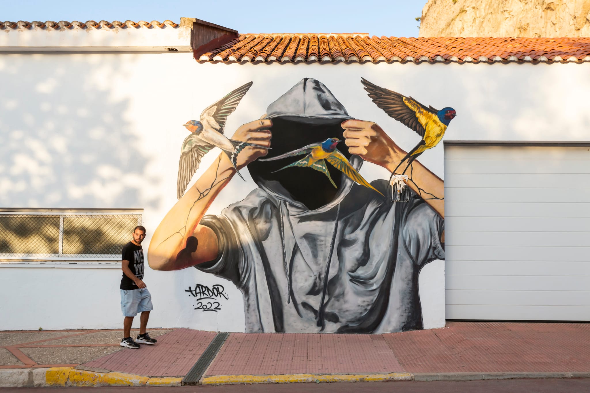 08 de septiembre de 2023 - 12:50 Foto Anterior3 de 17Foto SiguienteVer el artículo original: La Dénia de Tardor: cuando la ciudad es un lienzo y un muro es más que un obstáculo La exposición de Tardor en el Taller Turia, observada por el propio artista Tardor junto a un mural realizado durante el UrbaJove de Dénia Tardor en uno de sus últimos murales hechos en Dénia Fachada del IES María Ibars Mural de Angela Davis Mural en Jesús Pobre Mural en Protección Civil de Dénia Mural en el río Alberca de Ondara Mural realizado en Lunderskov, Dinamarca Tardor con el spray pintando sobre un mural Tardor creando un mural en Dénia Fachada del colegio de La Xara Mural de 5 plantas en Catalunya Mural en Alcudia de Crespins Oso polar de Tardor Tardor creando el mural de Gata Cattana Tardor en el mural realizado en 2016 en La Xara