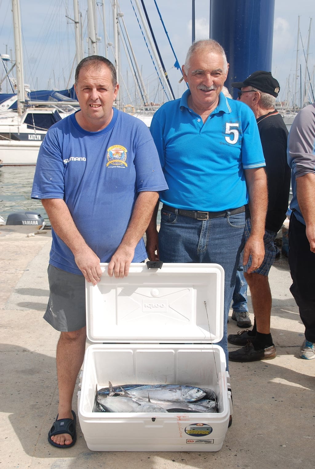 19 de octubre de 2015 - 12:52Uno de los participantes mostrando sus capturas. Foto Anterior3 de 6Foto SiguienteVer el artículo original: La embarcación “Gabatxet” fue la vencedora del concurso de pesca al Currican Miembros del barco Gabatxet ganador del concurso de pesca Pesaje de capturas del concurso de currican del RCN Dénia Antonio Sarch con sus capturas José Miguel Avellá consiguió la captura de mayor peso Miembros del barco Mar de Leva Miembros del barco Tonet recogiendo el trofeo