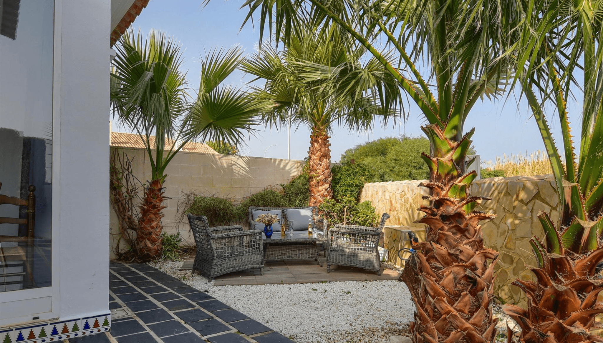 23 de septiembre de 2024 - 12:07Terrazas con vistas espectaculares para momentos inolvidables Foto Anterior5 de 9Foto SiguienteVer el artículo original: La escapada perfecta: casa en Dénia con jardín, piscina y a solo 500 metros de la playa Amplios espacios para crear recuerdos inolvidables en familia Descansa plácidamente en este luminoso dormitorio con cama de matrimonio y vistas al jardín Disfruta de acogedoras veladas en este amplio salón con aire acondicionado, televisión y una encantadora chimenea de leña Disfruta de cenas y momentos especiales en esta encantadora terraza protegida del sol Encantadora y acogedora, esta casa de dos niveles te invita a vivir una experiencia única en Denia House El Boticari es la elección perfecta para unas vacaciones inolvidables en la Costa Blanca Prepara deliciosas comidas en esta moderna cocina con electrodomésticos completos y acceso directo al comedor Refréscate en la piscina privada de 6×3 metros rodeada de un exuberante jardín con árboles y tumbonas Zona perfecta para leer, conversar o simplemente disfrutar del entorno en cómodos asientos al aire libre
