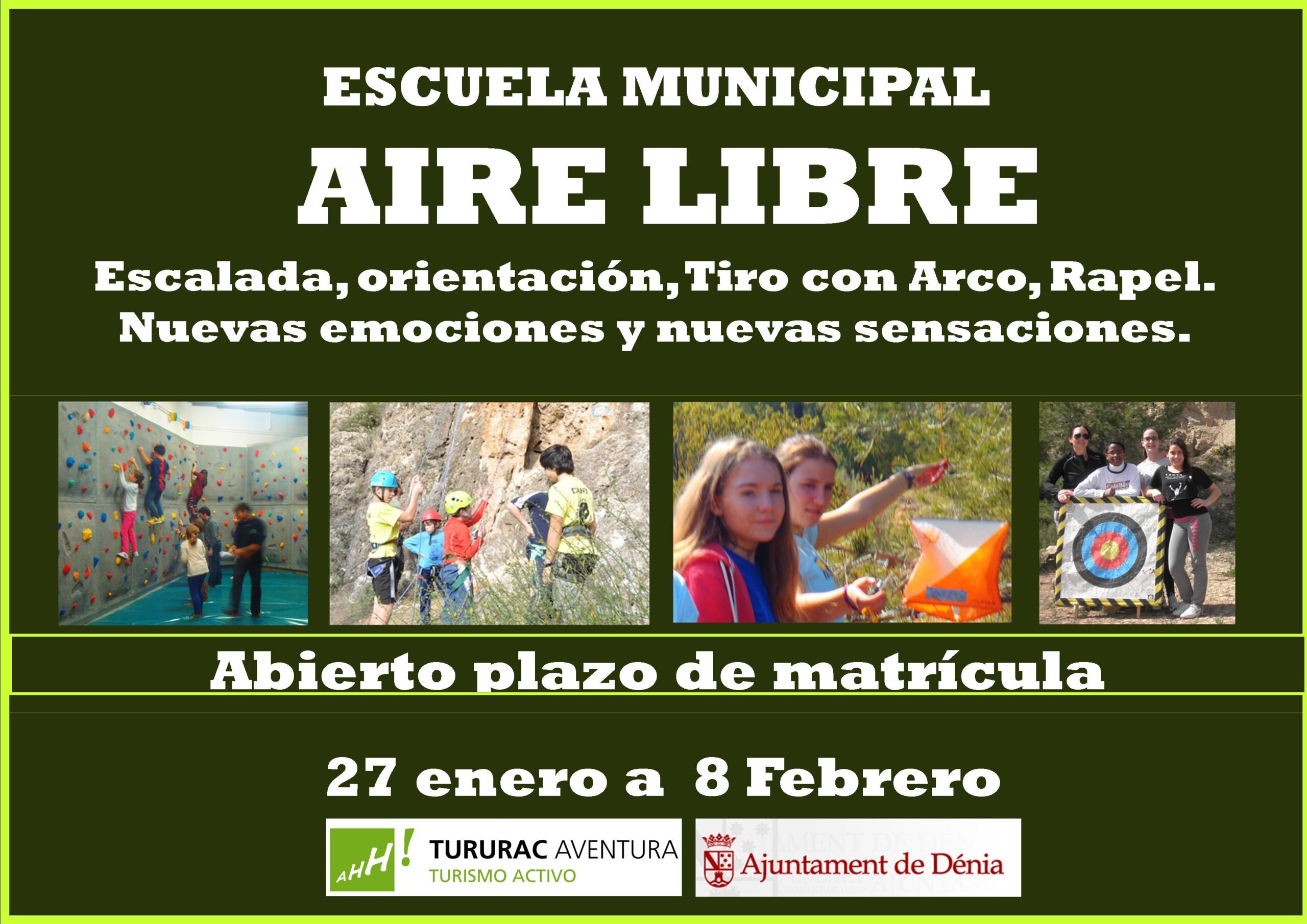 Cartel informativo sobre la nueva Escuela Municipal Aire Libre que han puesto en marcha el ayuntamiento de Dénia y Tururac.