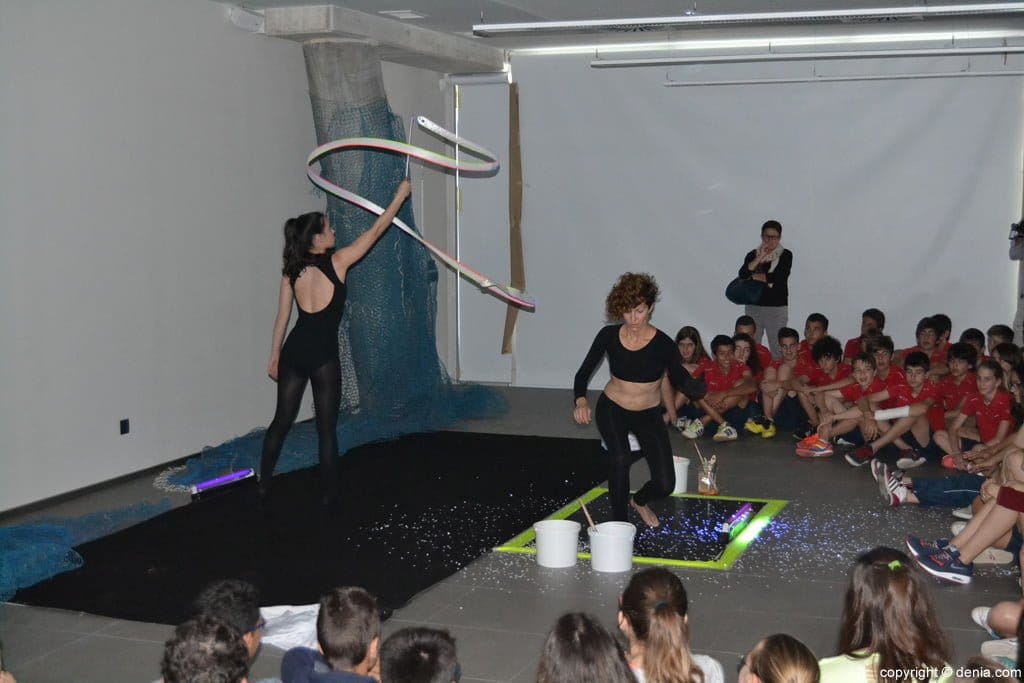 Antes de asistir a la clase magistral, los escolares presencian una performace y un vídeo sobre la importancia del entorno natural.