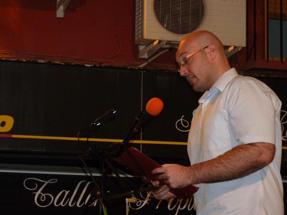 25 de septiembre de 2012 - 09:38 Foto Anterior2 de 6Foto SiguienteVer el artículo original: La III Festa Estellés reúne en la calle del poeta a la fiesta, la cultura y el comercio de Dénia Cena popular en la III Festa Estellés de Dénia Josep Crespo lee un poema de Vicent Andrés Estellés Lectura de poemas cantados de Vicent Andres Estelles Lectura de un poema de Vicent andrés Estellés durante la fiest organizada por el Bloc Participantes en la III Festa Estellés de Dénia Sebastià García conduce la III Festa Estellés en Dénia