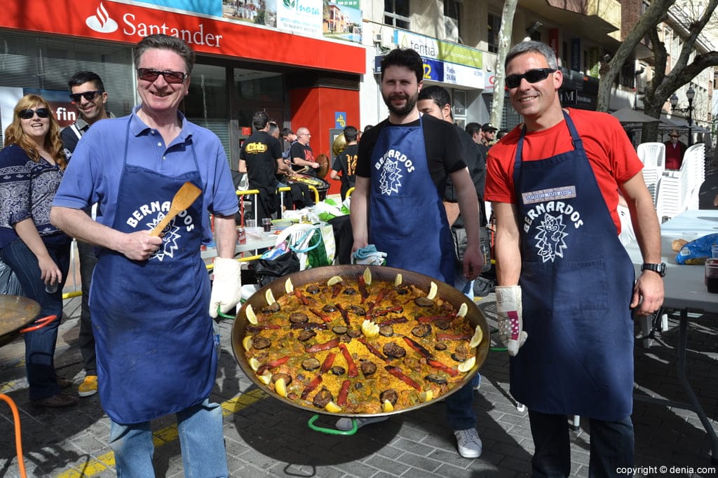 Resultado final de la paella de los miembros de la Peña Bernardos en el Mig Any de la Fiesta Mayor de Dénia.