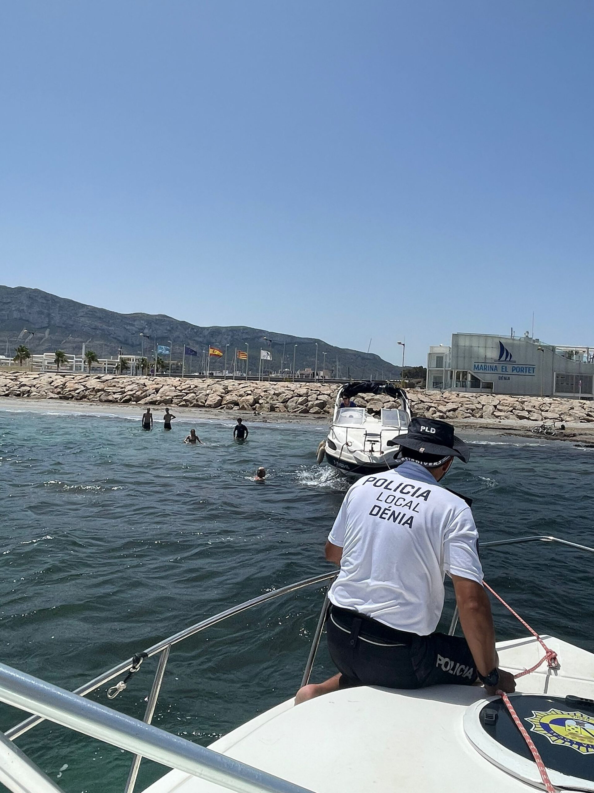 19 de julio de 2024 - 15:04 Foto Anterior2 de 4Foto SiguienteVer el artículo original: La Policía Local de Dénia rescata a una barca motora encallada en la playa de la escollera norte Policía Local de Dénia en el rescate. Policía Local. dest Policía Local de Dénia en el rescate. Policía Local. Policía Local de Dénia en el rescate. Policía Local. dest Policía Local de Dénia en el rescate. Policía Local.