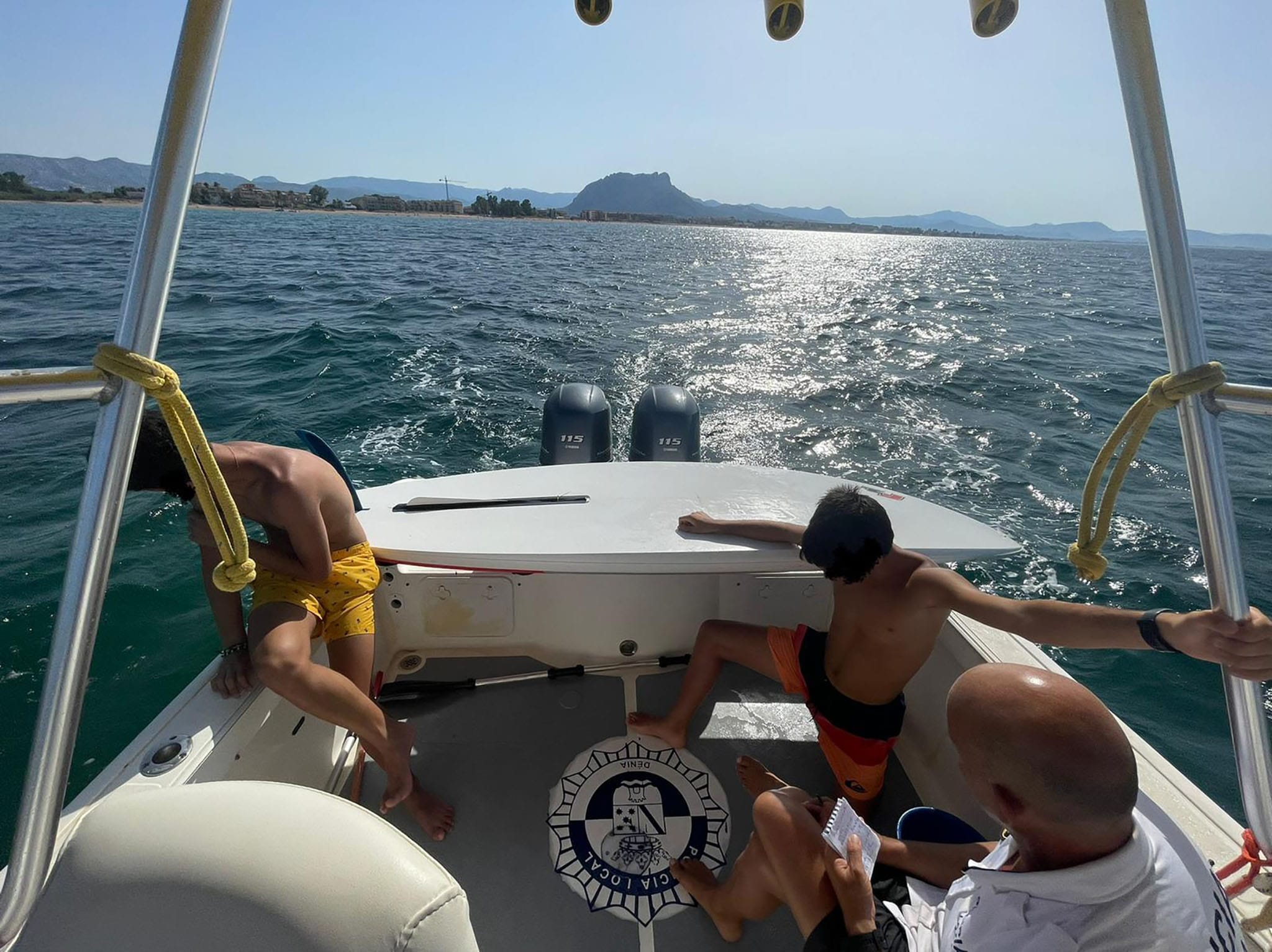 10 de agosto de 2022 - 22:22 1 de 1Ver el artículo original: La Policía Local de Dénia rescata en el mar a dos jóvenes a la deriva en una tabla de windsurf Jóvenes rescatados en Dénia