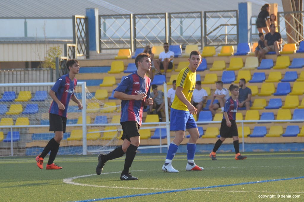 De salida hubo exceso de nervios en el equipo dianense y el público asistente al campo Diego Mena, notó que su equipo no estaba cómodo sobre el rectángulo de juego. Los valencianos con mayor físico que los dianenses no tardaron en adueñarse del balón. En el minuto 9, Satorres supo sacar tajada del mal momento de los locales para hacer el 0 a 1.
