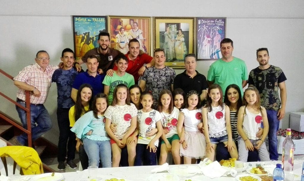 Las candidatas a falleras mayores de Dénia 2017 con los presidentes de las fallas de Dénia durante la convivencia.
