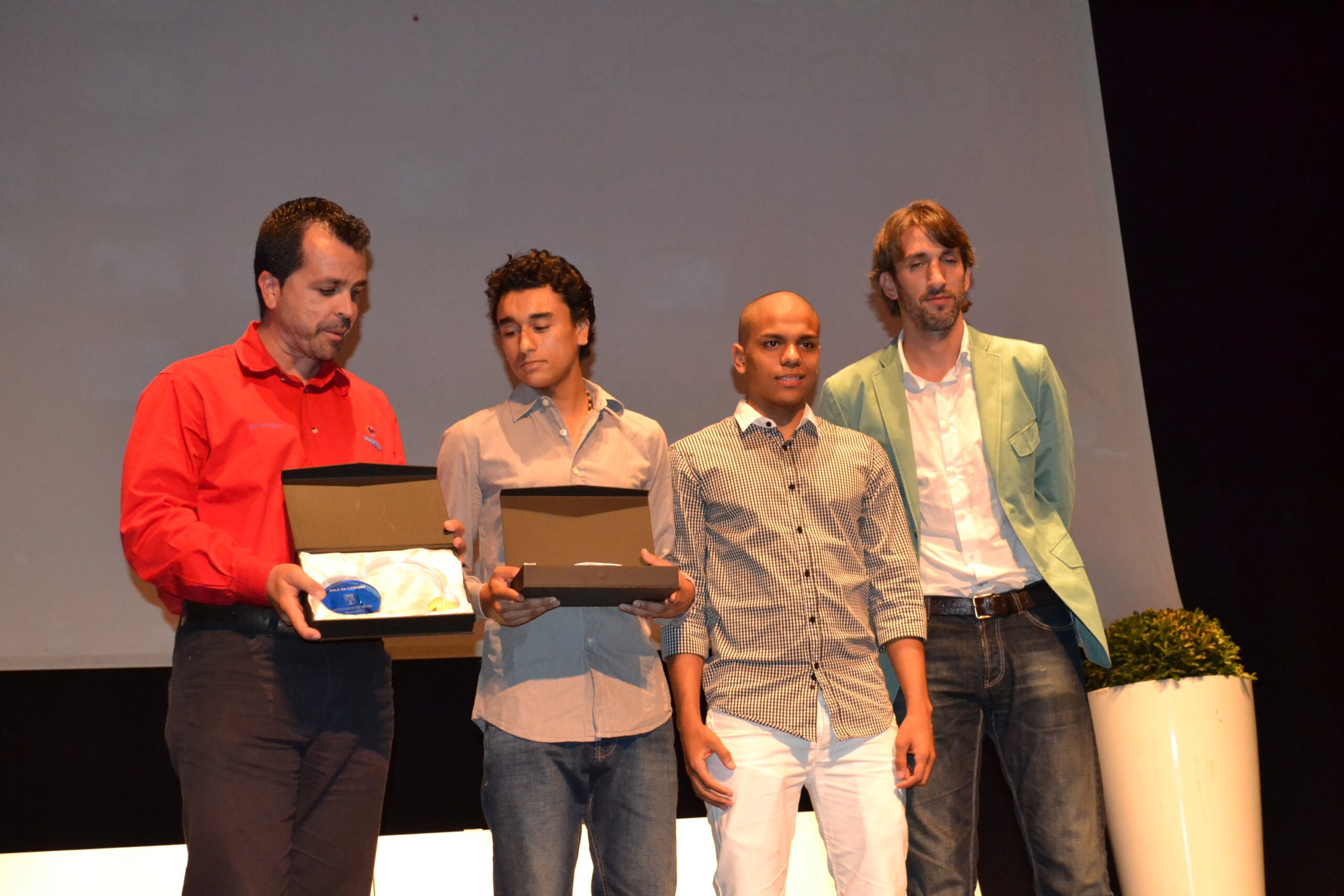 Regatistas del RCN. Dénia galardonados por ser Campeones de España de larga distancia en Catamarán F 18.