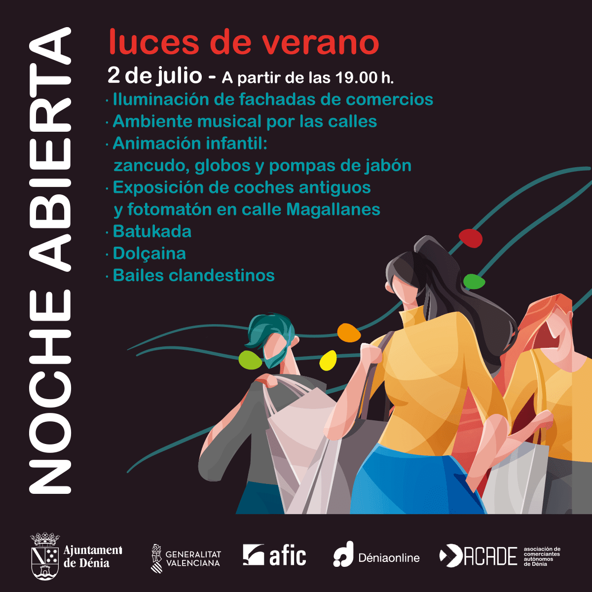 El sábado 2 de julio, a partir de las 19 horas, se celebrará la Noche abierta del comercio, en la que más de setenta establecimientos iluminarán sus fachadas y ofrecerán sus productos con promociones y descuentos