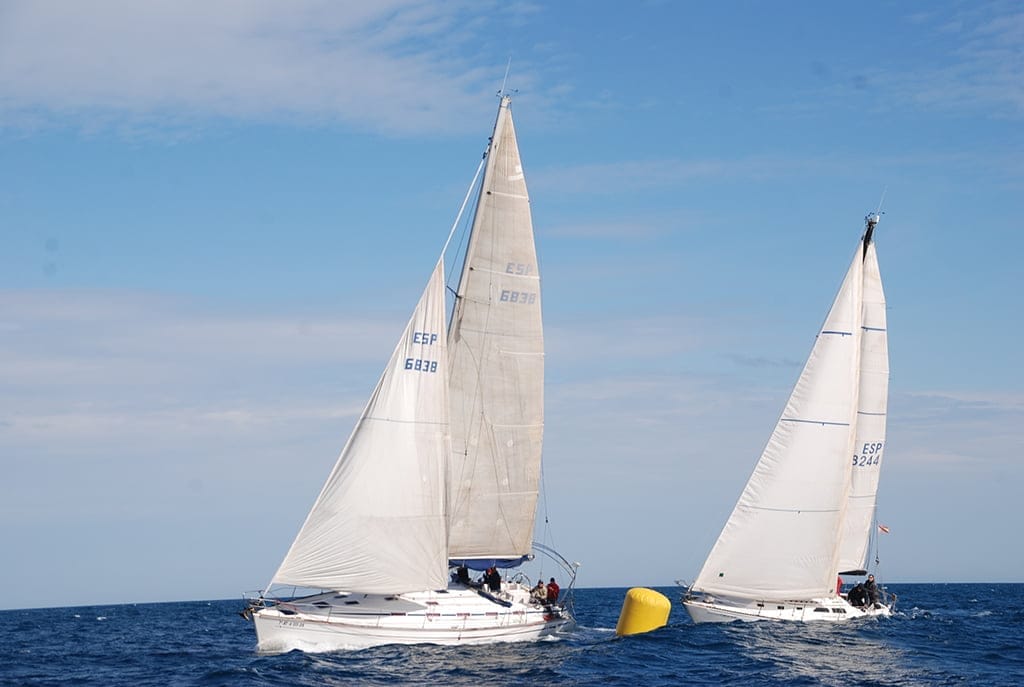 Paso de una de las boyas de la regata por parte de dos barcos.