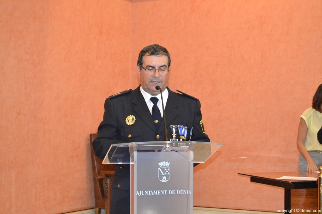 El agente de Policía Local Manuel Moreno fue encargado de la conducción del acto del Día de la Policía.