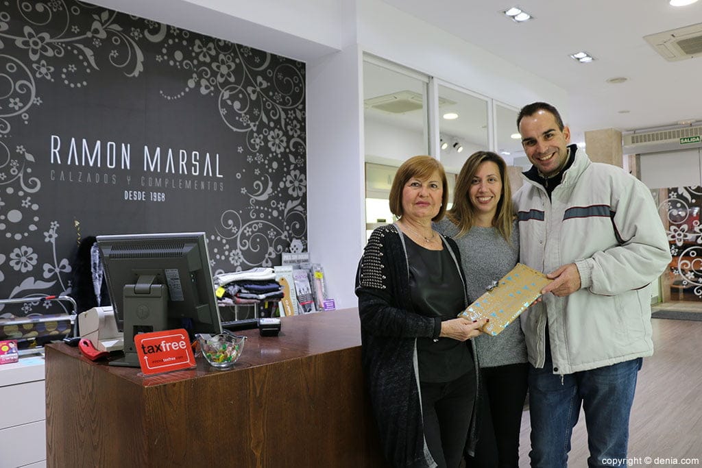 Vicente, el ganador de la cesta de navidad, recogiendo su premio en Calzados Ramón Marsal.