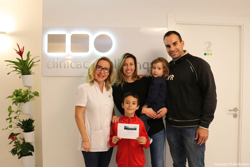 Vicente, el ganador de la cesta de navidad, recogiendo el premio junto a su familia.