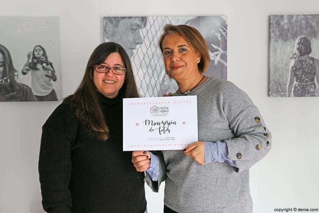 Manoli,l a ganadora de la cesta de Navidad, recogiendo su mini-sesión de fotos.