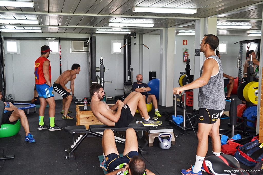 Los jugadores españoles en el gimnasio