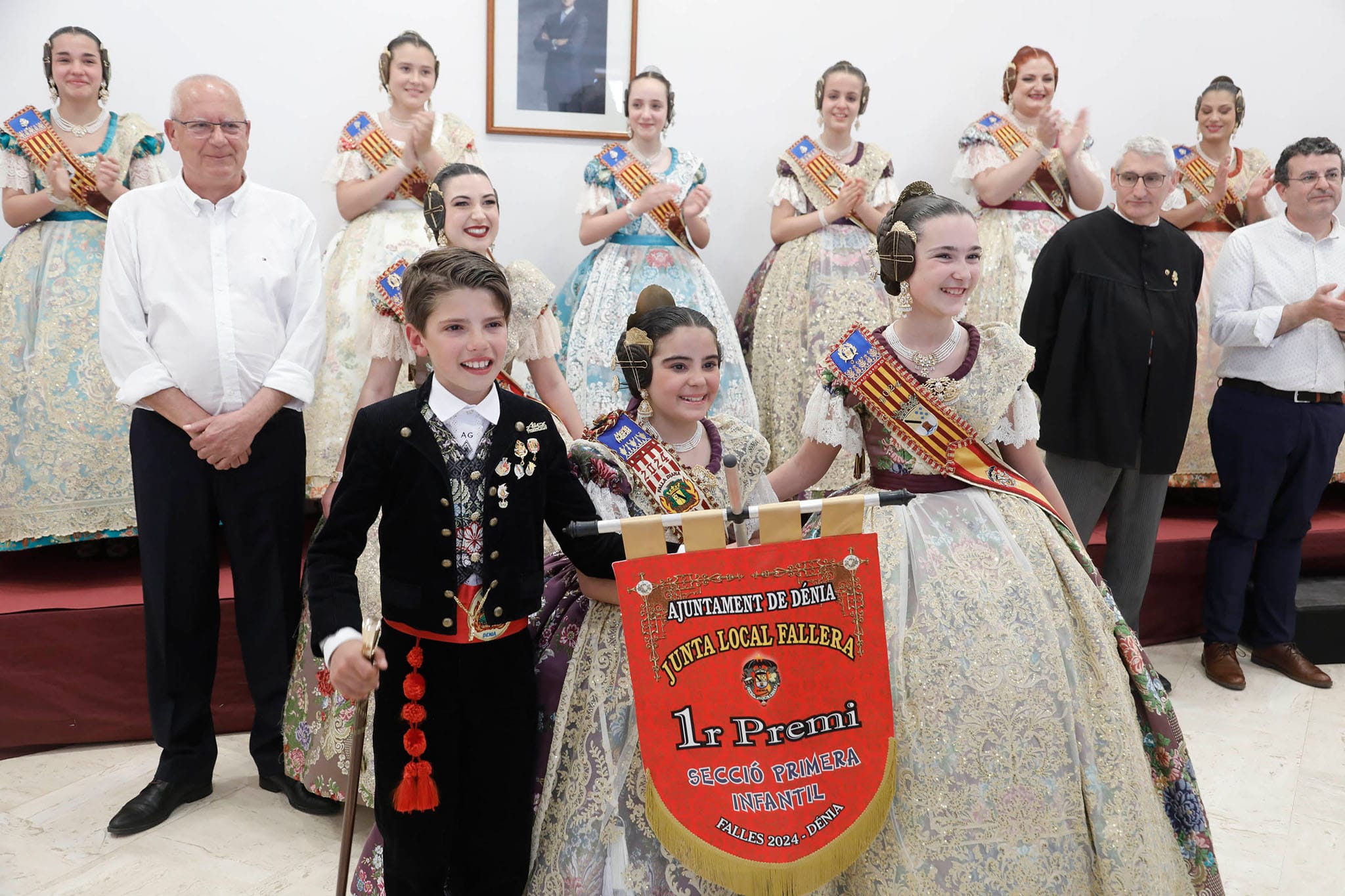 El presidente y la fallera mayor de la Diana reciben el Primer Premio Infantil de la Sección Primera