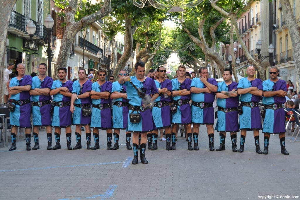 Escuadra de la filà Creuats en la entraeta de moros y cristianos qu se celebró el último día de las fiestas mayores de Dénia.