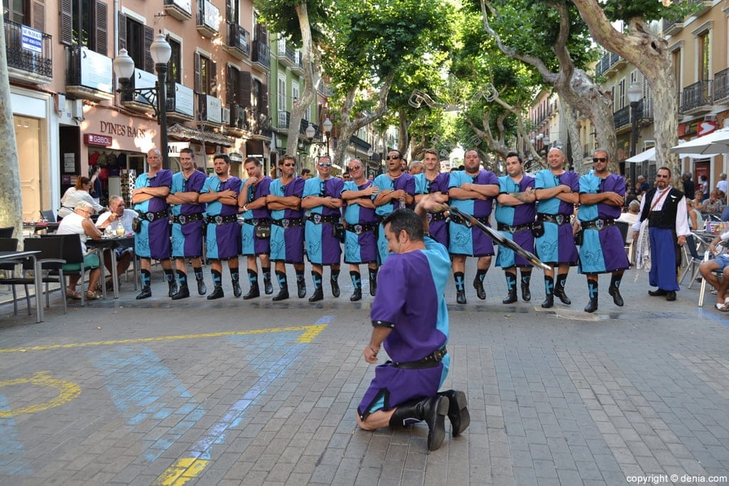 Escuadra de la filà Creuats en la entraeta de moros y cristianos qu se celebró el último día de las fiestas mayores de Dénia.