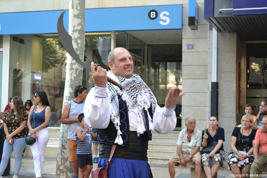 Escuadra de la filà Berebers Tuaregs en la entraeta de moros y cristianos que se celebró el último día de las fiestas mayores de Dénia.