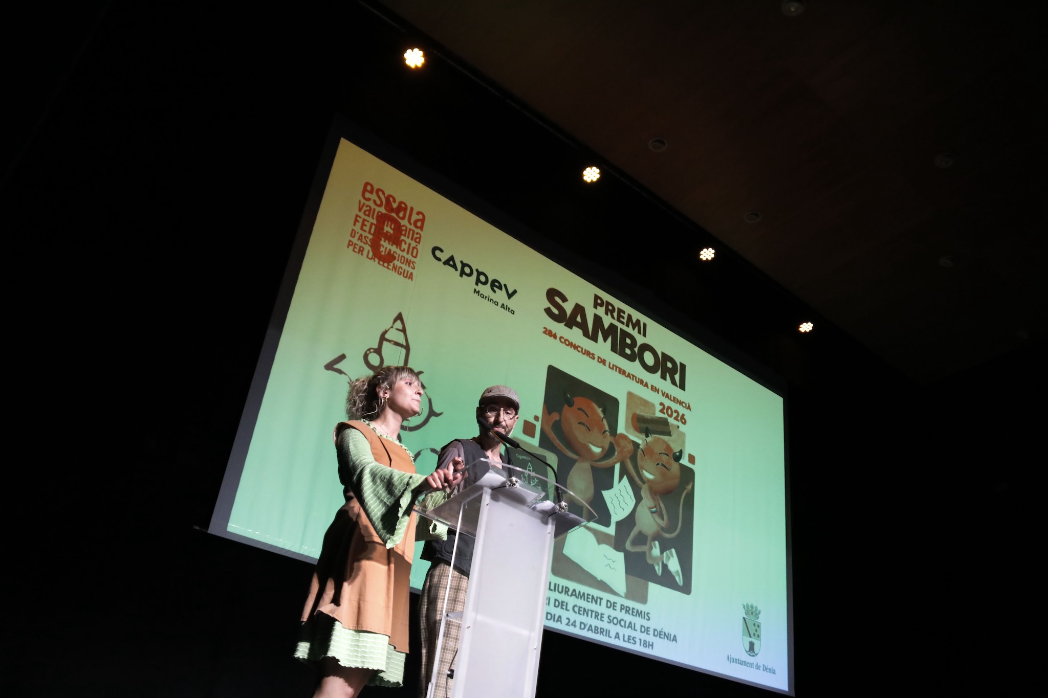 Los presentadores de L’Estranya Companyia durante un momento de la entrega de premios en el Centre Social de Dénia