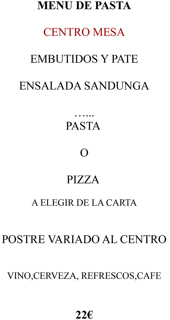 15 de noviembre de 2017 - 17:09¡Reserva ya tu mesa! 1 de 4Foto SiguienteVer el artículo original: Menús de empresa Sandunga 52 Menú pasta empresa 2017 Sangunda 52 Menú picadas Empresa 2017 Sandunga 52 Menús de empresa 2017 de Sandunga 52 menu-de-empresa-carne-sandunga-52-590×786