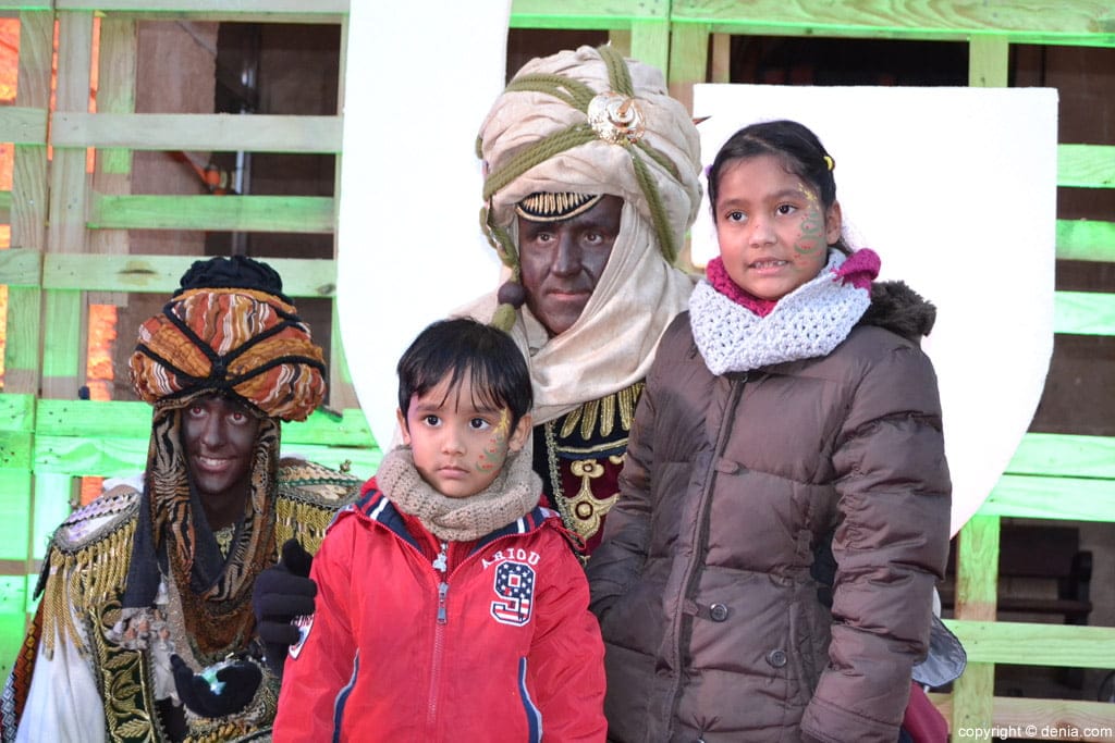 Visita de los Carteros Reales a Dénia – hermanitos con el cartero real