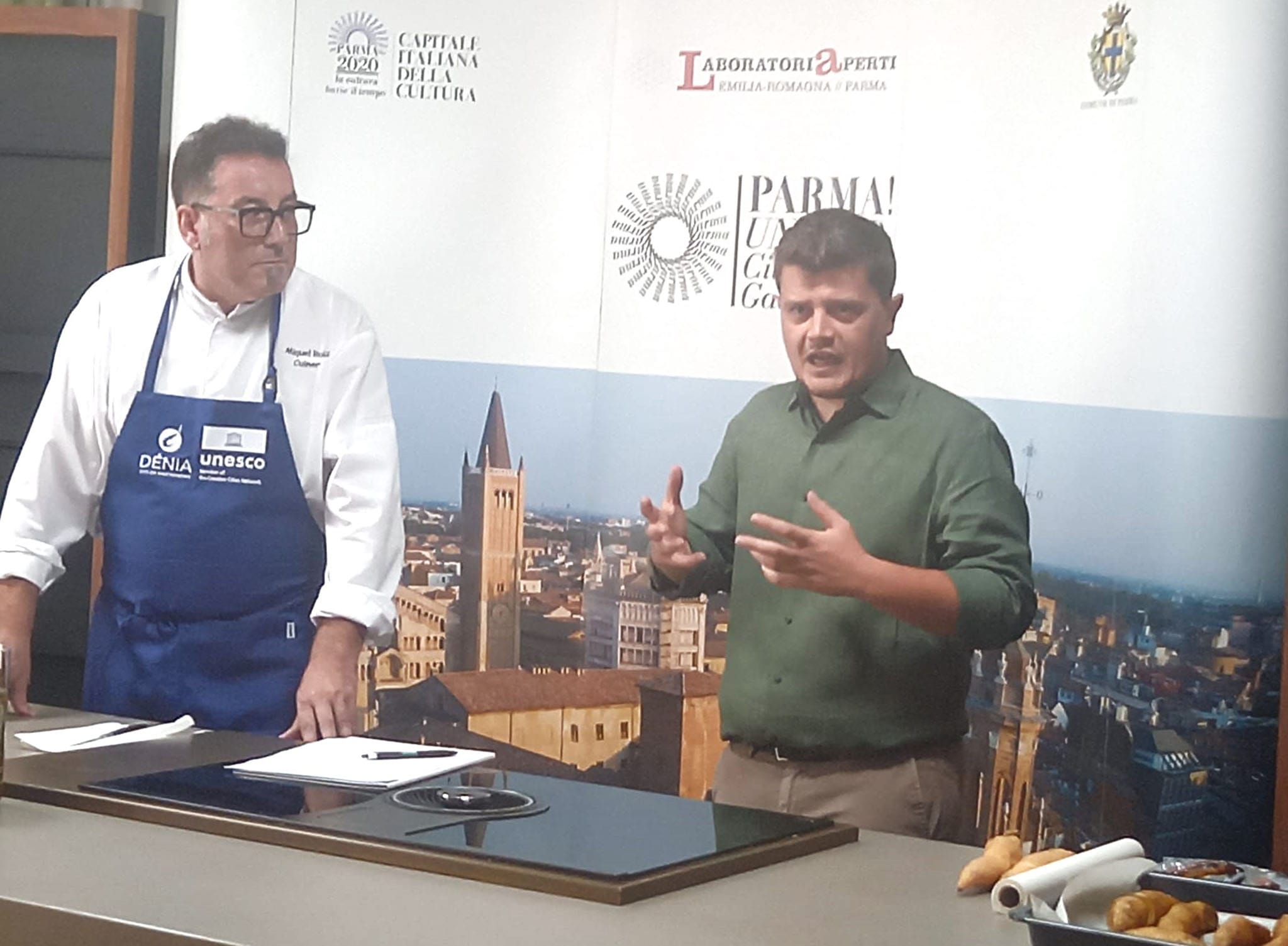 12 de septiembre de 2023 - 13:27 1 de 2Foto SiguienteVer el artículo original: Miquel Ruiz deslumbra representando a Dénia en el festival gastronómico italiano de Parma Participación de Miquel Ruiz en el festival de Parma Convenio entre Parma y Dénia