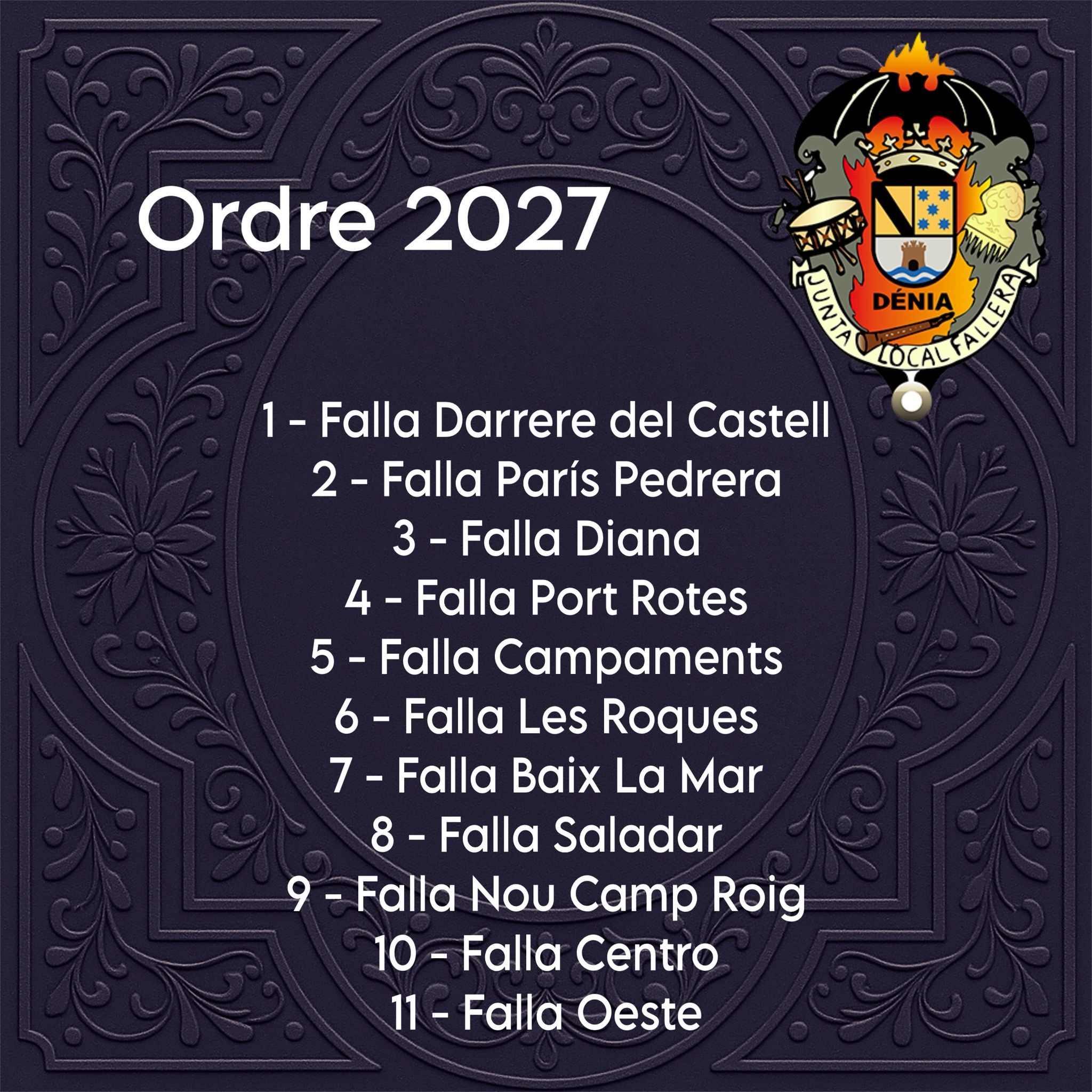28 de abril de 2026 - 10:06 Foto Anterior5 de 5Ver el artículo original: Mira cuándo es tu presentación: Dénia desvela el calendario fallero 2026-2027 Presentación de Paula Argudo, Fallera Mayor de Dénia 2026 Desfile de carrozas de Dénia de 2025 Presentaciones grandes Fallas de Dénia 2026-2027 Presentaciones Fallas infantiles Dénia 2026-2027 Orden carrozas Dénia 2026
