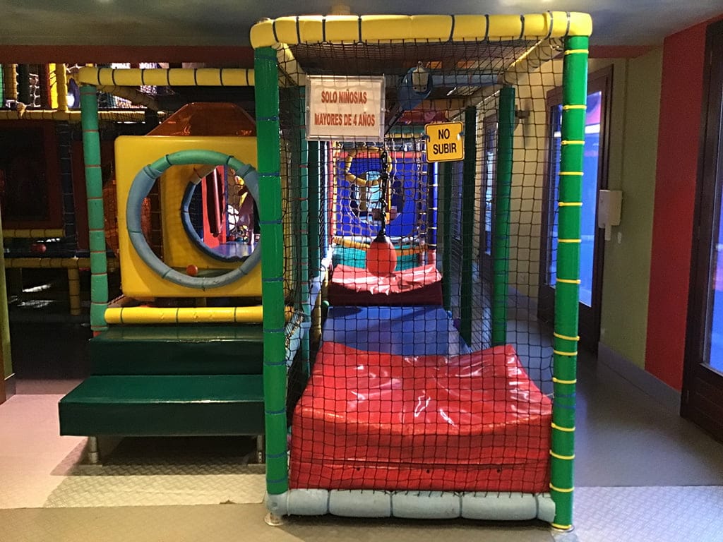 Zona de juegos infantil en Mon Blau. Laberinto con colchonetas y parque de bolas ideal para que los niños disfruten