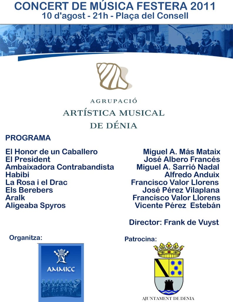 21:00h CONCIERTO MUSICA FESTERA, Agrupación Artística Musical de Dénia, en la Plaza del Consell.