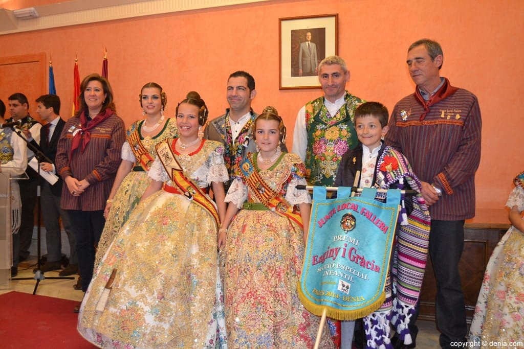 Carla Cabrera y óscar Comes, cargos infantiles de la Falla baix la Mar, recogen el premio “Ingenio y Gracia” de sección especial de las fallas de infantiles de Dénia 2014.