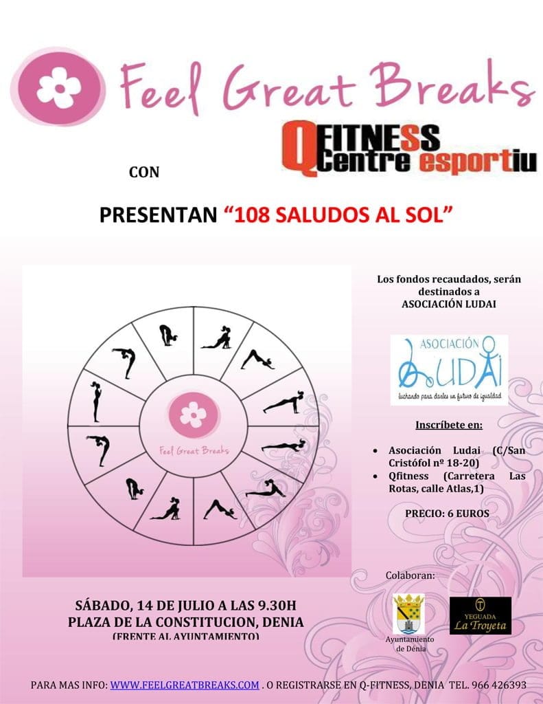 10 a 14 h.: Evento 108 saludos al Sol, dirigido por instructores de yoga, a beneficio de la Asociación Ludai. Organizan Great Breaks y Q Fitness. Plaza de la Constitución.