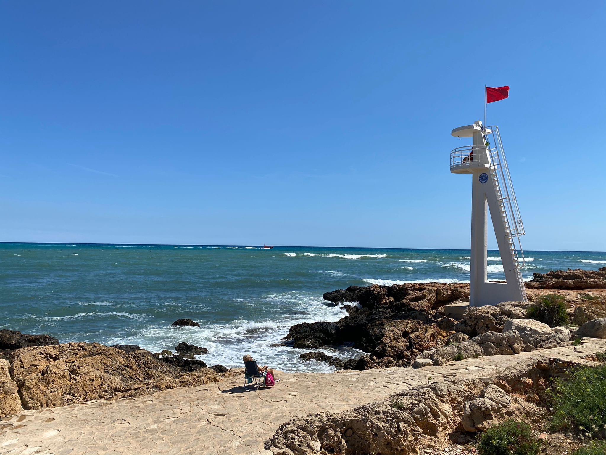 27 de junio de 2024 - 14:22 1 de 1Ver el artículo original: Prohibido el baño en parte de las playas de Dénia por posible contaminación residual La bandera roja ondea en El Trampolí (archivo)