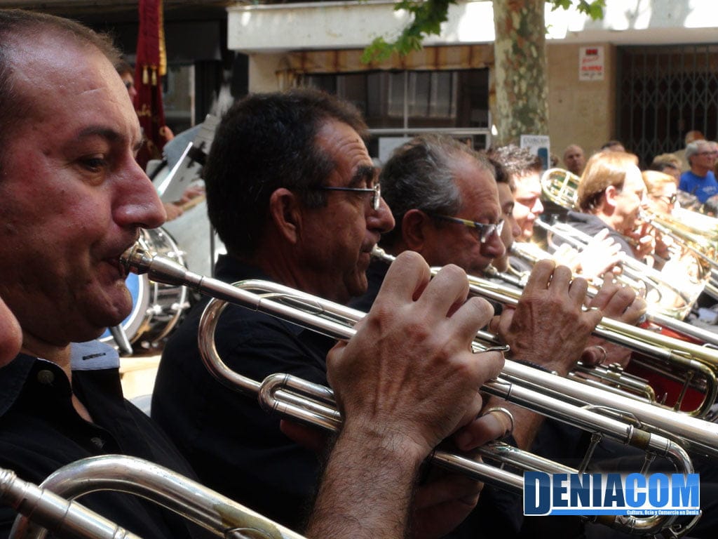 El presidente Josep Vicent Bonet y el amado ex director Pepe Cendra entre los trompetistas del concierto de pasodobles