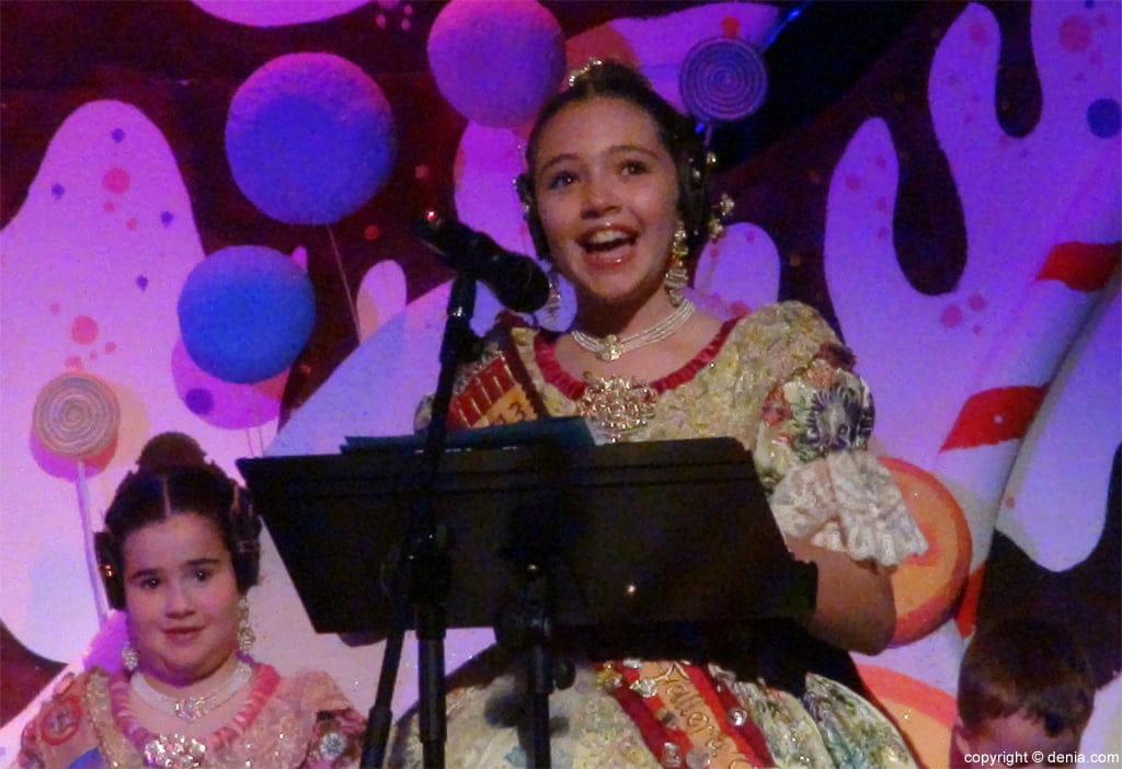 Despedida de Marina Llorens, Fallera Mayor Infantil del Oeste 2013, durante la presentación de los cargos infantiles de la falla para el ejercicio 2014.