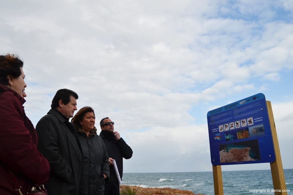 La alcaldesa de Dénia, Ana kringe, y el Conseller José Ciscar en la inauguración de los carteles informativos de la Reserva marina del Cabo de San Antonio.