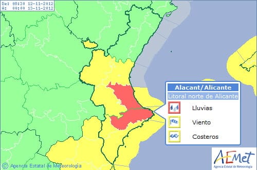 Desde el domingo a las 16 horas se ha instalado en la comarca una alerta roja por lluvias y viento que se mantendrá durante hoy lunes y mañana martes dejando hasta 120 litros por metro cuadrado y rachas de viento de hasta 70 kilómetros por hora.