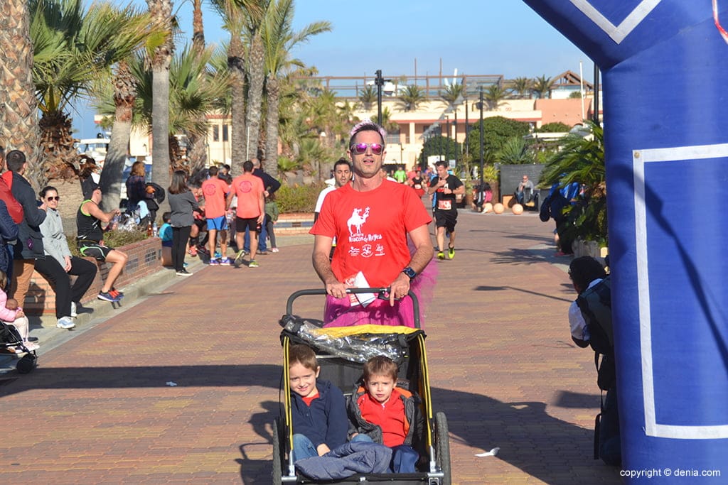 Padre tirando de un carro de bebe